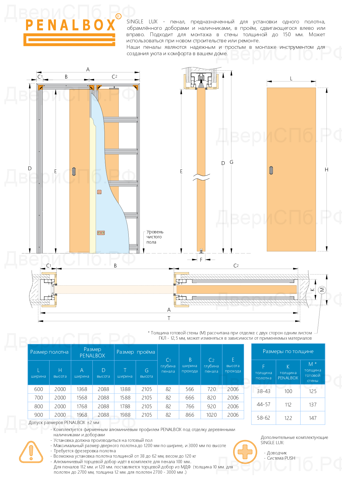 • Комплект фурнитуры рассчитанный на вес одного полотна 80 кг. Под заказ можно укомплектовать пенал роликами на 130 кг.;