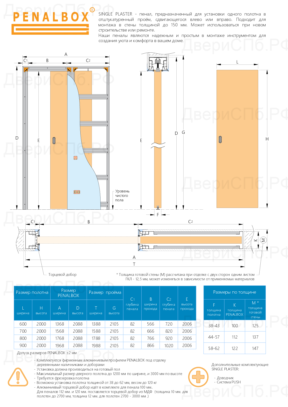 • Версия пенала нестандартной толщины под полотна до 62 мм производится без дополнительных наценок.