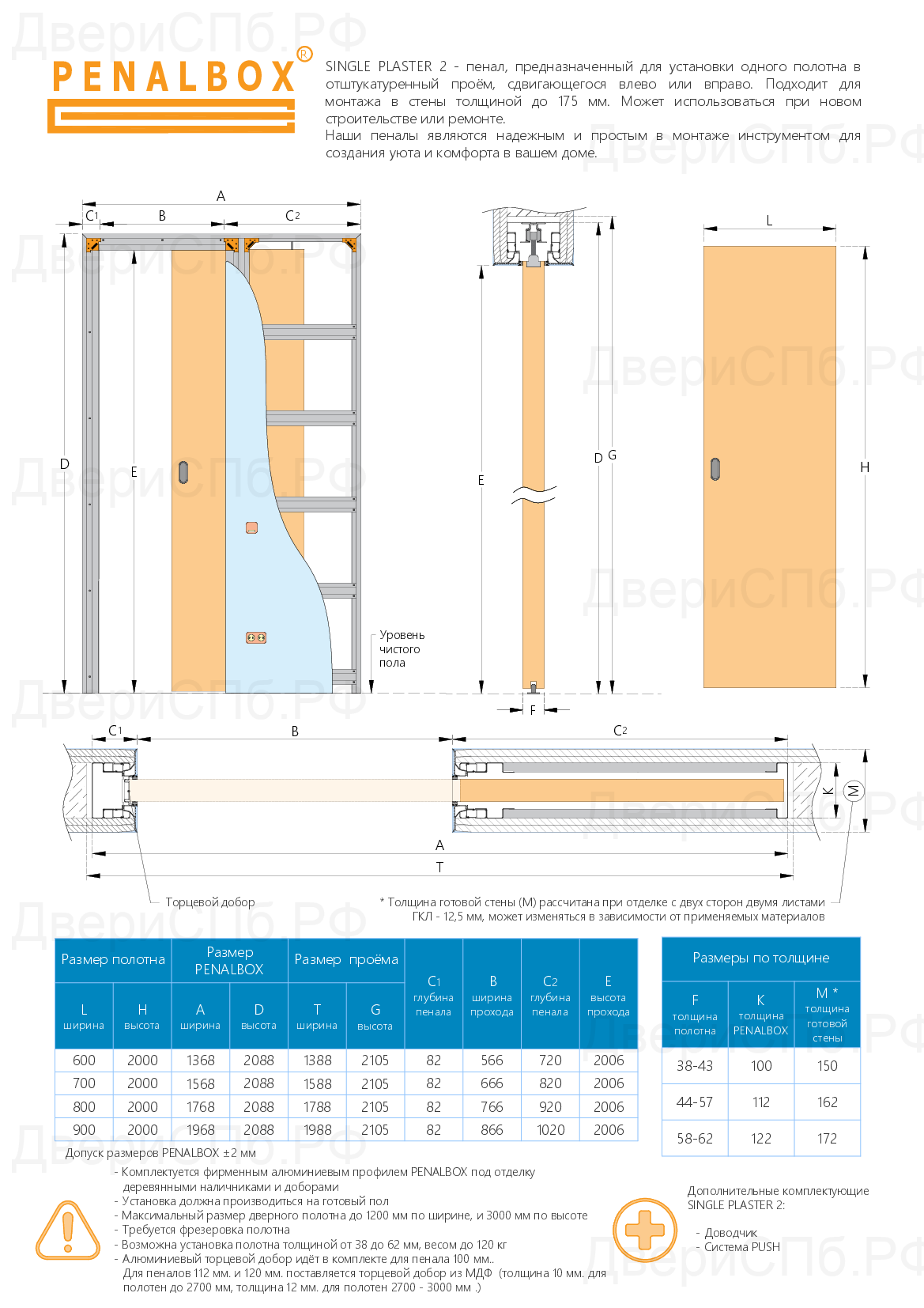 • Пенал по умлочанию изготвливается под отделку 1 листом ГКЛ с каждой стороны. Версию под 2 листа рассчитывайте через менеджера.
